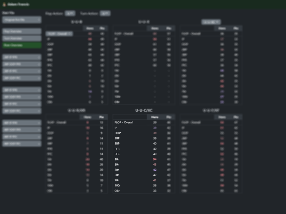 Students provided their raw hand data, which the client ran through a proprietary tool. The resulting analysis was then pulled into a clunky ~20 MB+ Excel file, which used data validation and VBA to create a set of interactive summary tables and charts.