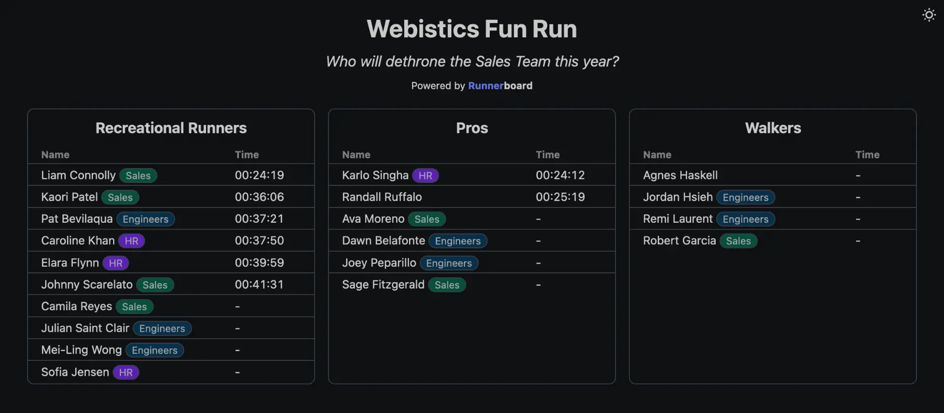 And so that’s what I did: publish a working web app that lets you share a leaderboard for any time-based competition. (Plus, it ships with light/dark mode out of the box.)